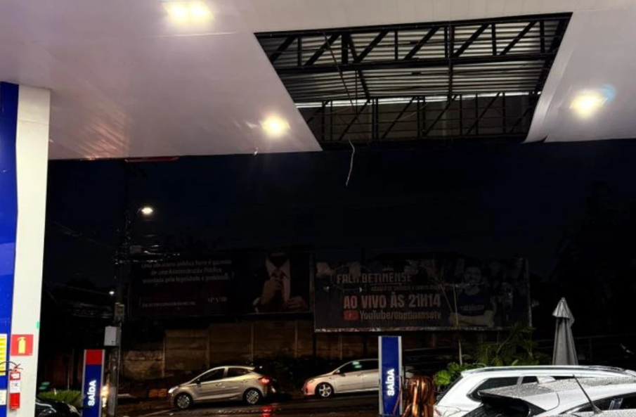 Parte do teto de um posto de combustíveis desabou com a forte chuva que caiu em Betim, nesta sexta-feira (6/3). O incidente ocorreu em um estabelecimento que fica na avenida Amazonas, perto da prefeitura, na altura do bairro Brasileia. Ninguém se feriu.