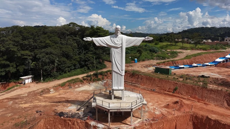 O AquaMais, parque aquático em construção em Betim, apresentou nesta semana um dos marcos de sua obra: a escultura de um Cristo Redentor instalada no terreno do empreendimento.